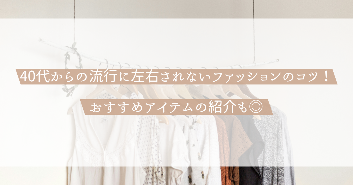 今回の記事では、40代からの流行に左右されないファッションのコツやアイテムの選び方を中心に、おすすめアイテムも紹介します。
