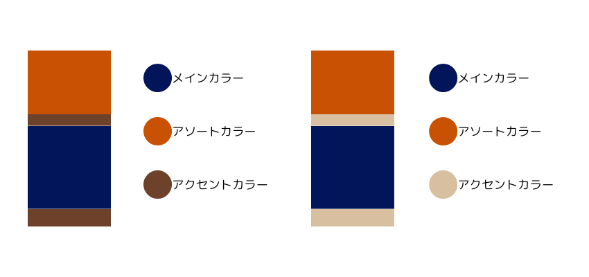 ここでは、メインカラーとアソートカラーとアクセントカラーの役割について解説します。